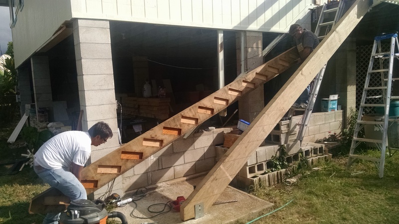 ◱ New back stairs in Laie from the side.