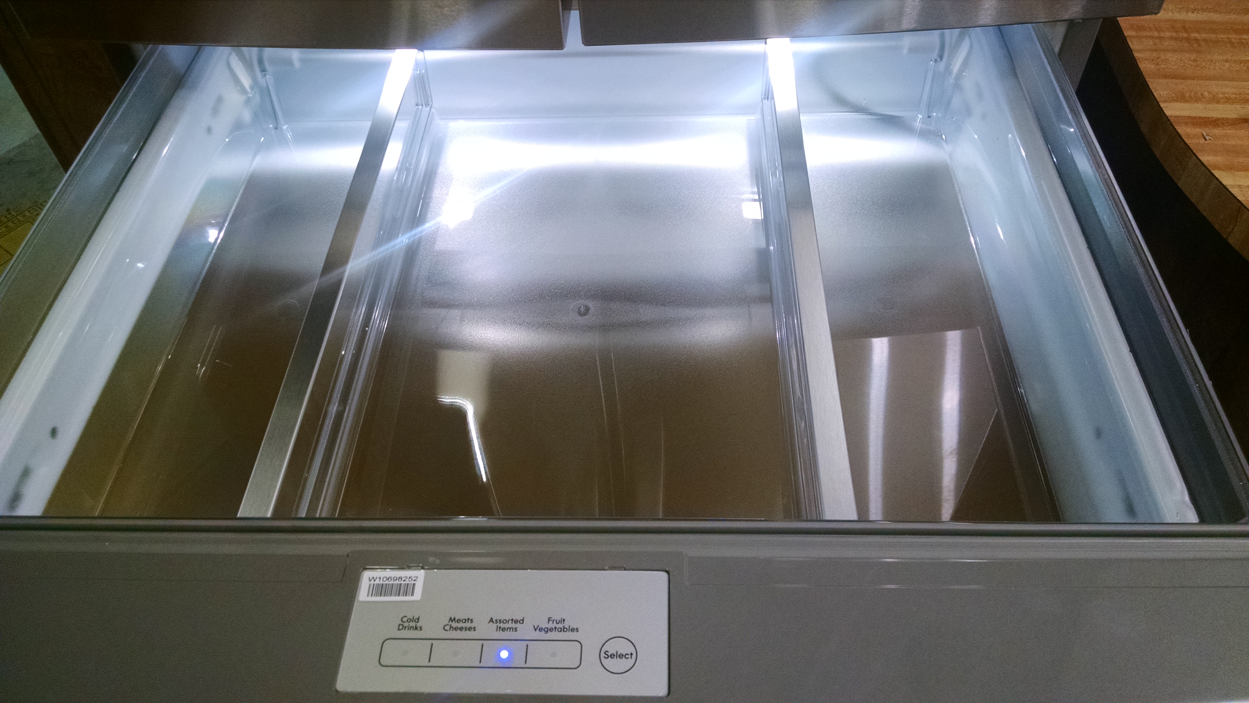 ◱ Middle refrigerated drawer has dividers that can come out.