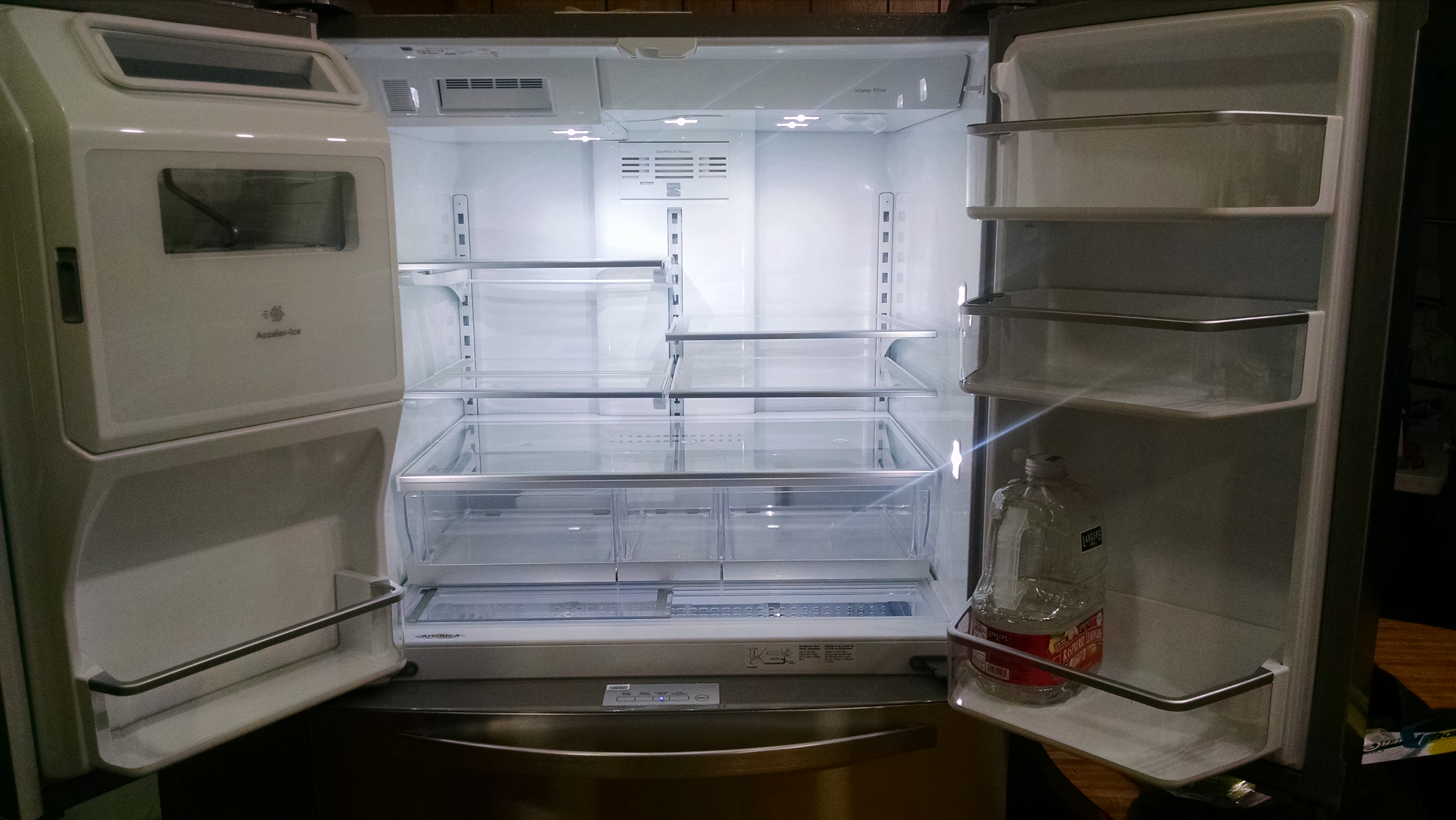 ◱ Ice door. It doesn't store as much ice as our other fridges, but easier to get in and out.