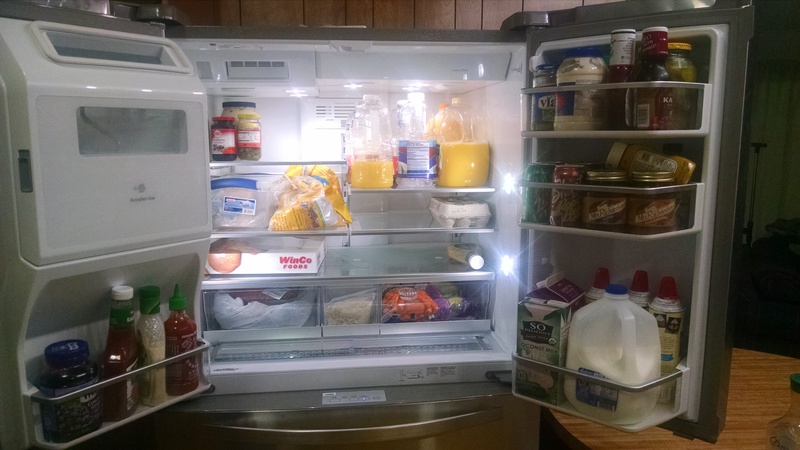 ◱ bottom freezer with food.