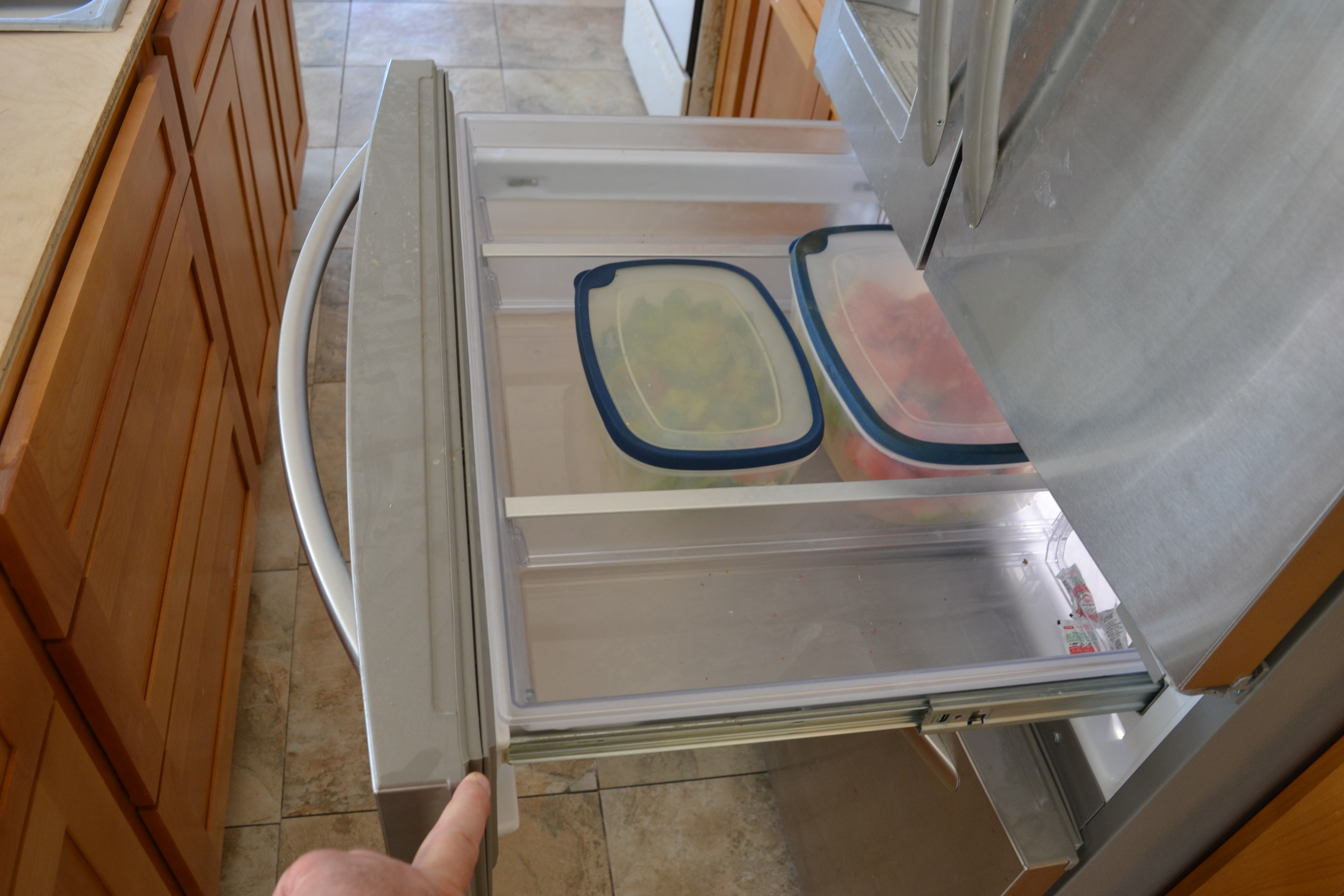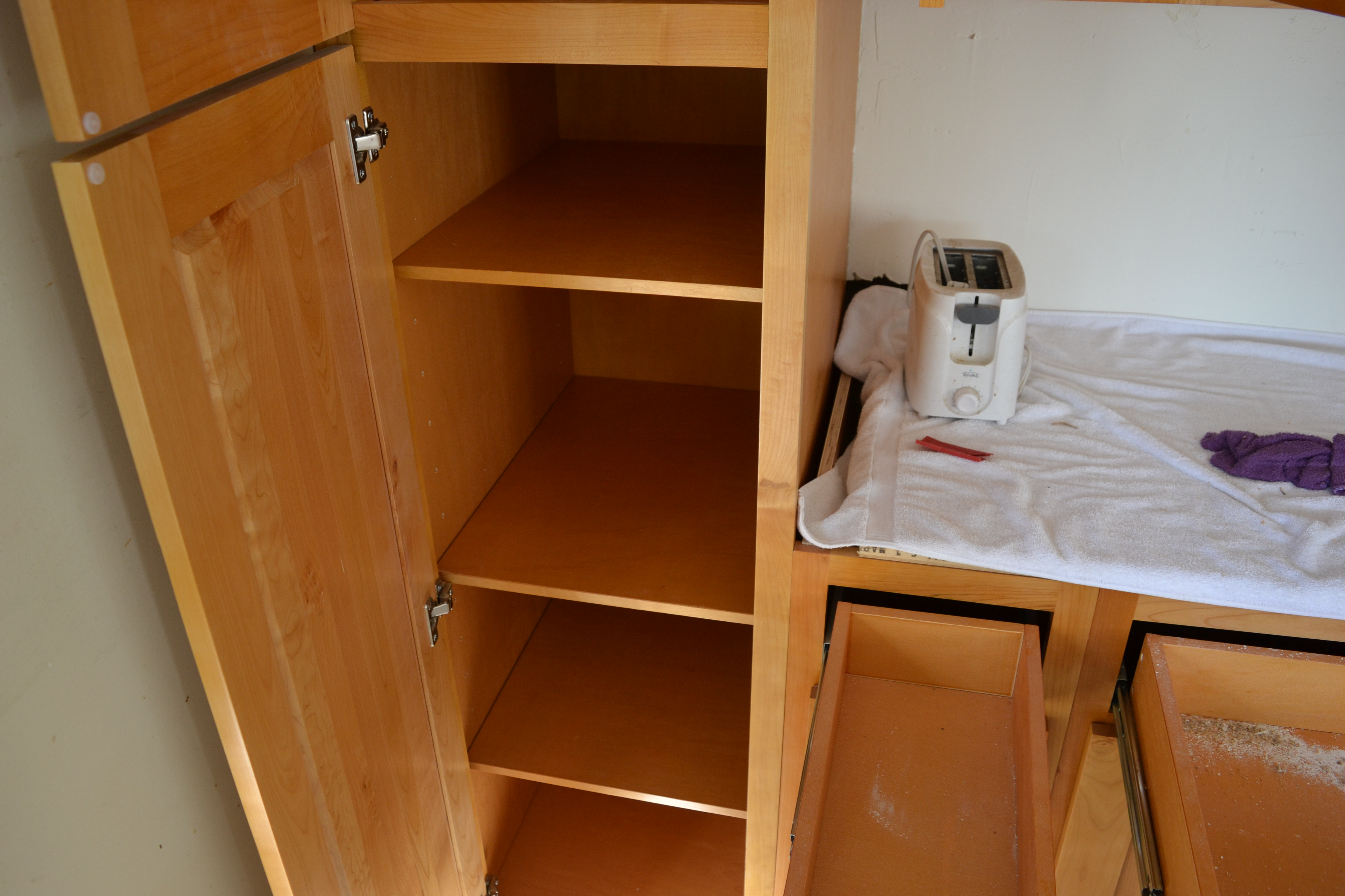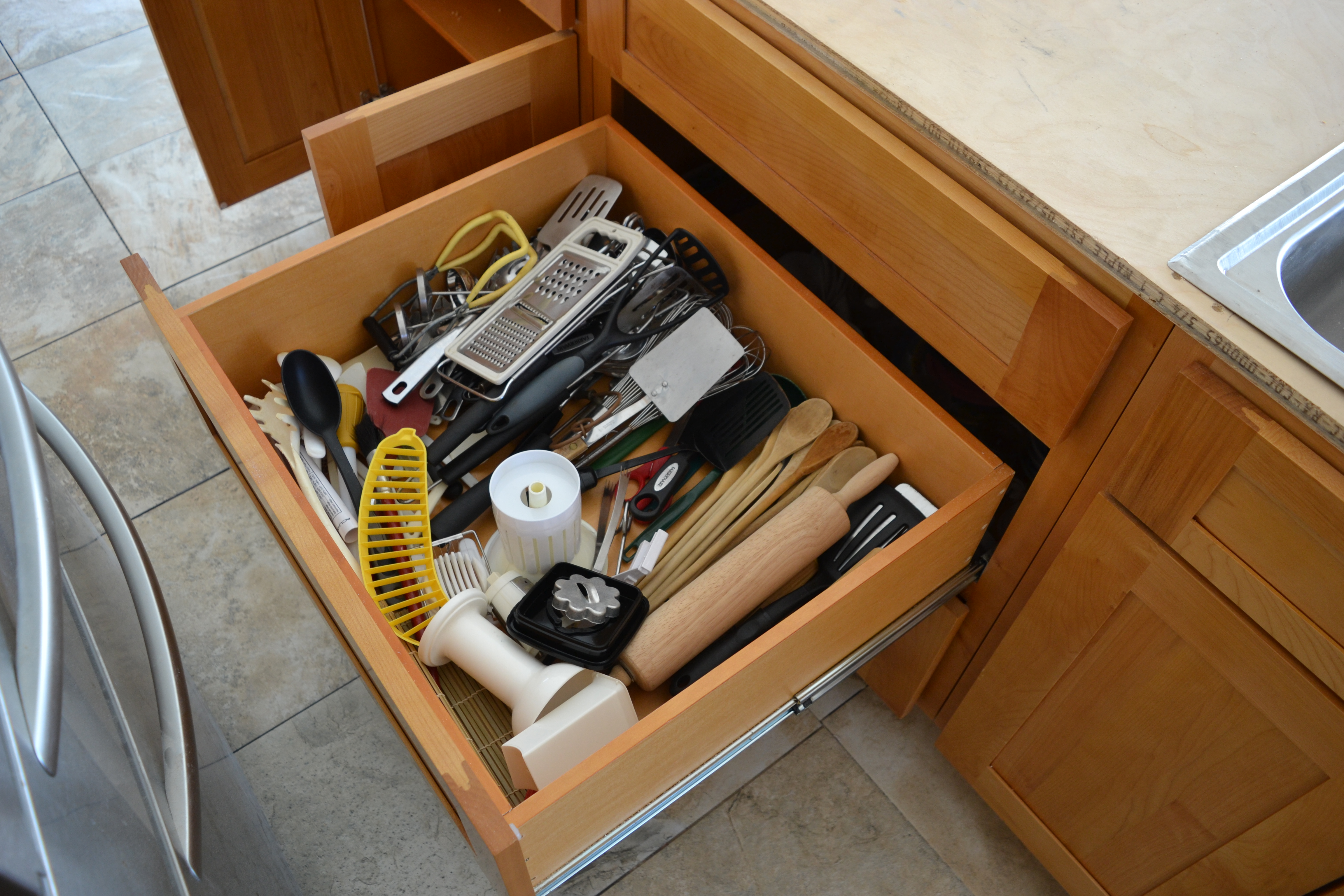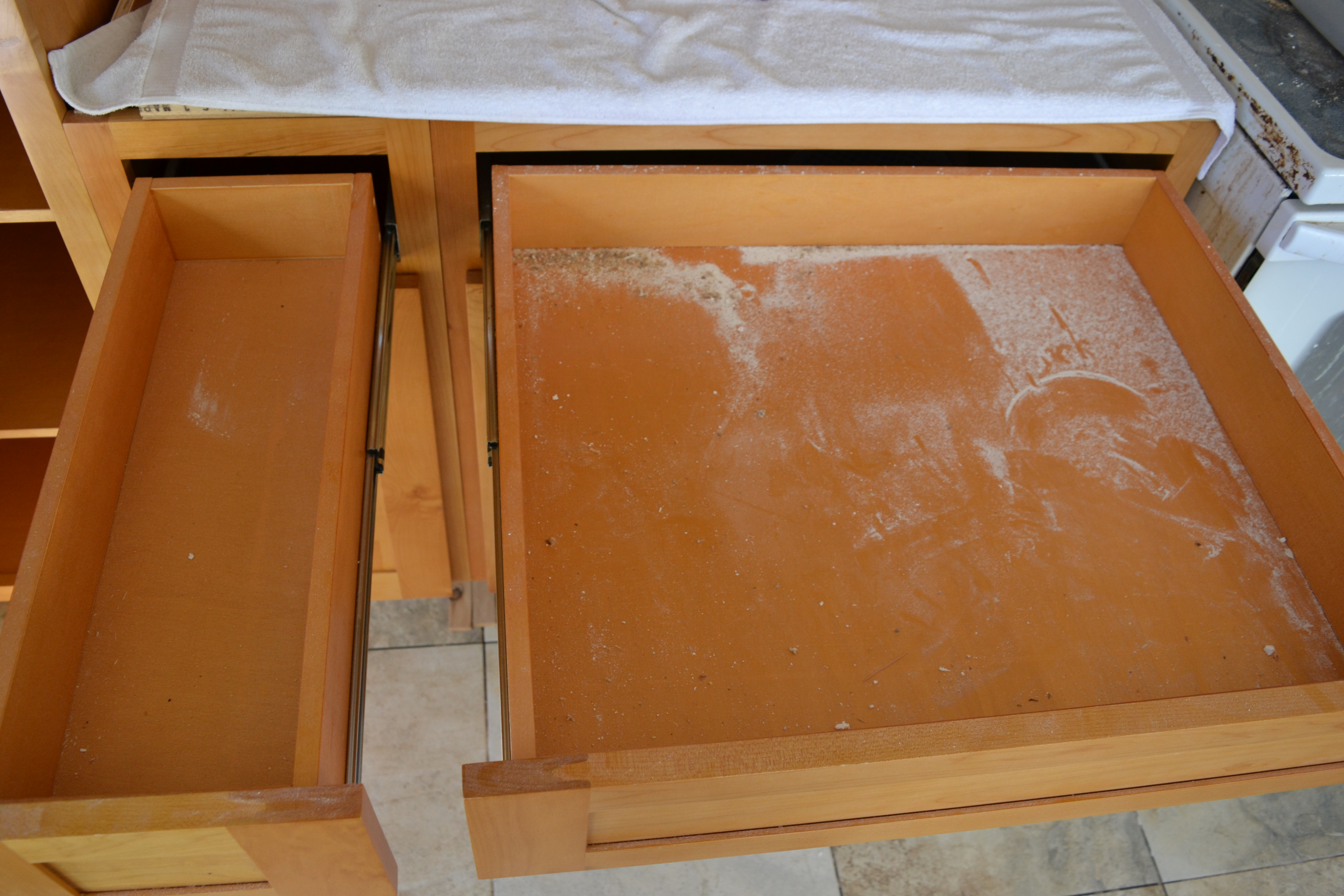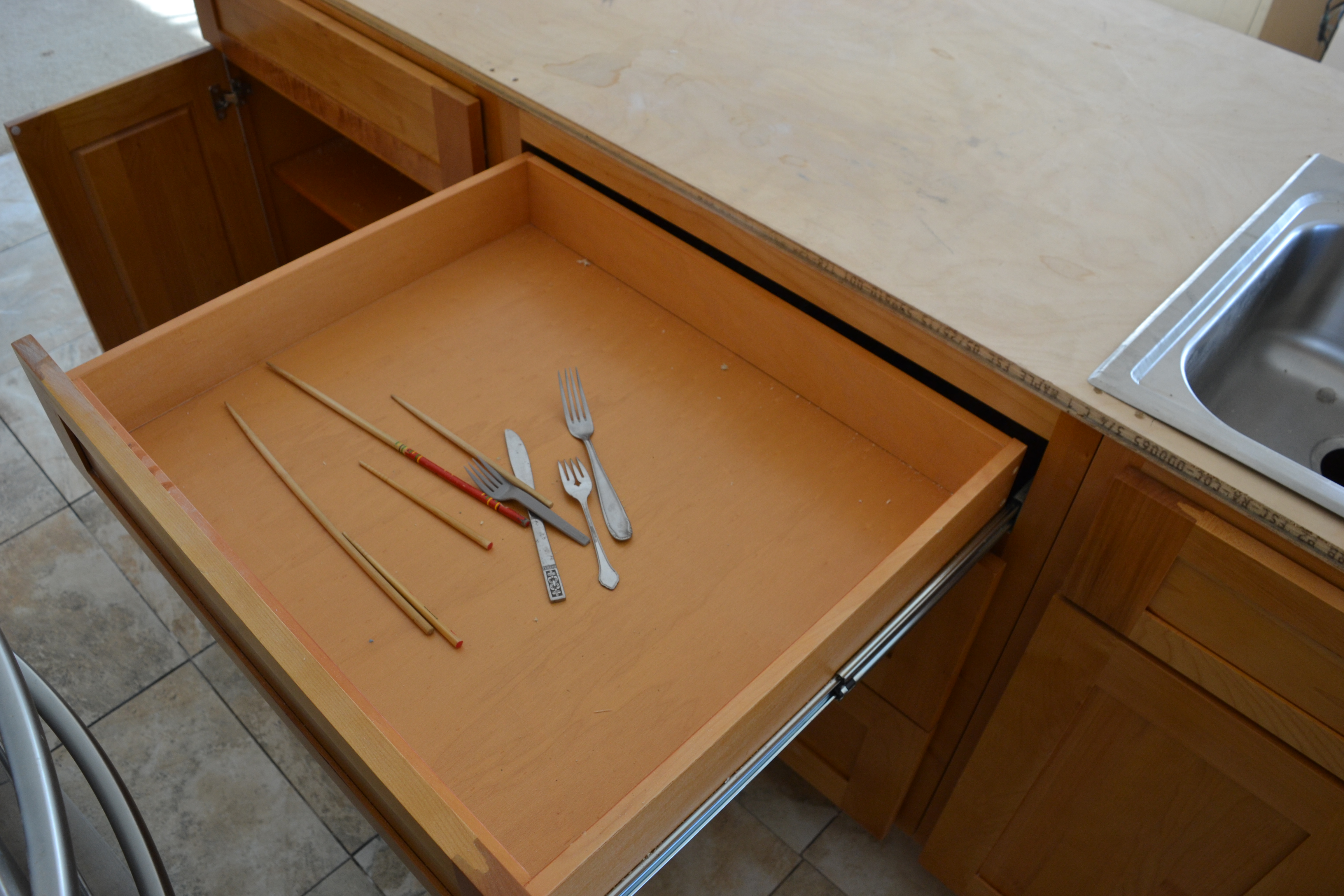 ◱ Kitchen main cabinets north end top drawers