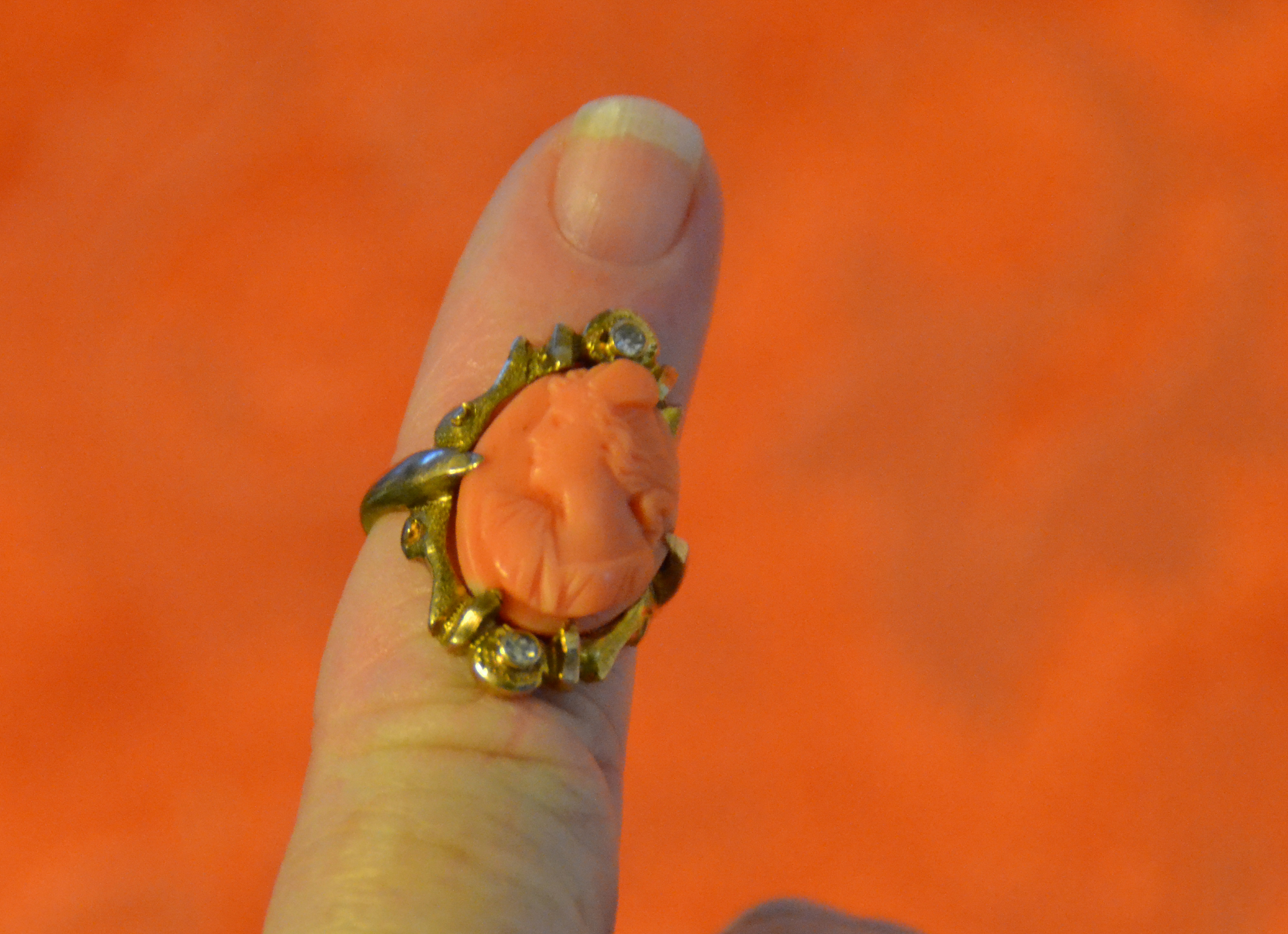 ◱ Olaf Conrad Sundstrom,who went by Conrad, gave Esther Elvira Ostlund this cameo ring when they got engaged.