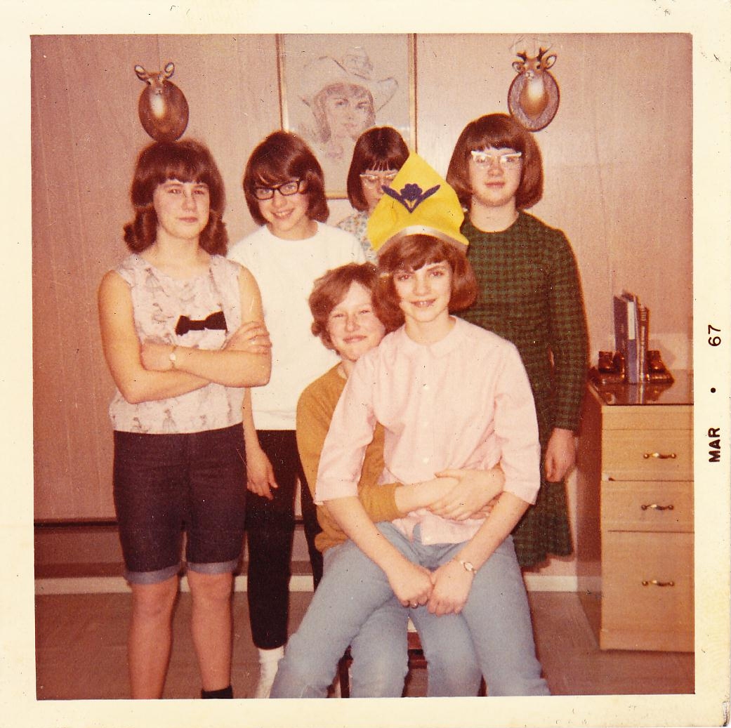 ◱ Some of my friends. Front: Debra, Kathy Manuel, Janet, Marlene Donahue, Second: Sheila Acton, Lois Clayton, Kristie McKune,