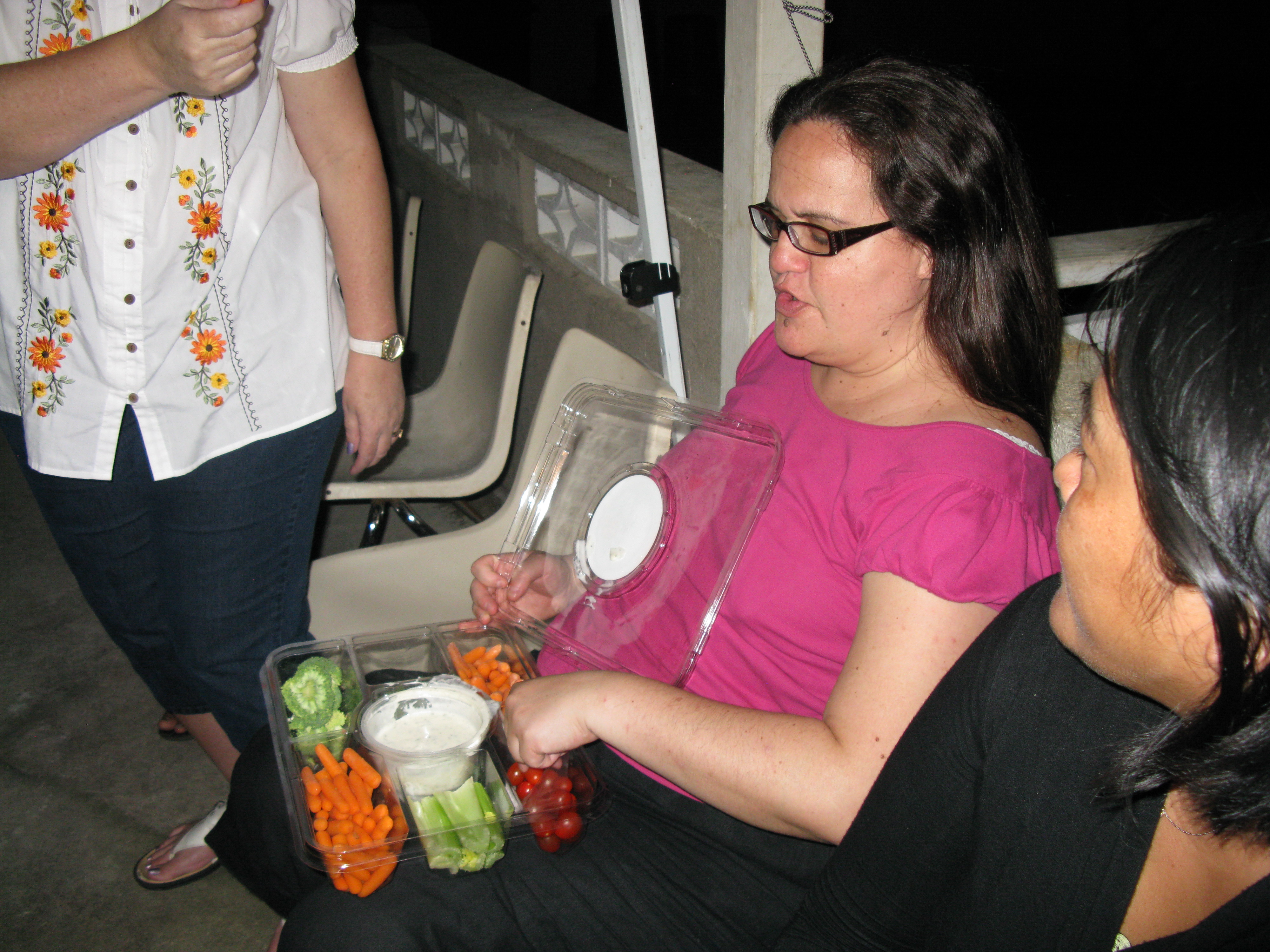 #42 ◱ At the end of the night we still had shrimp in the container. It traveled from house to house and people ate lots of shrimp, but we still had shrimp left over at the end of the night.